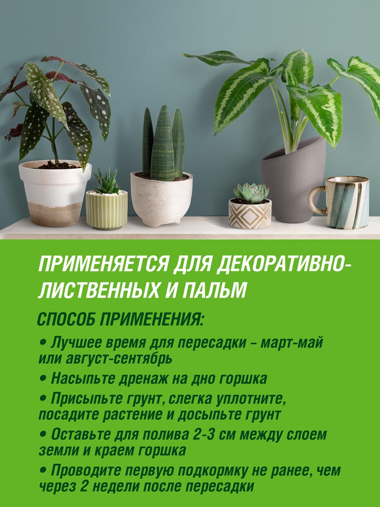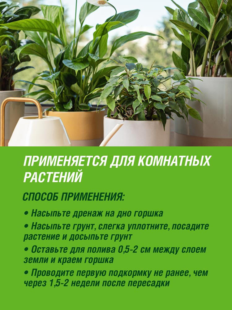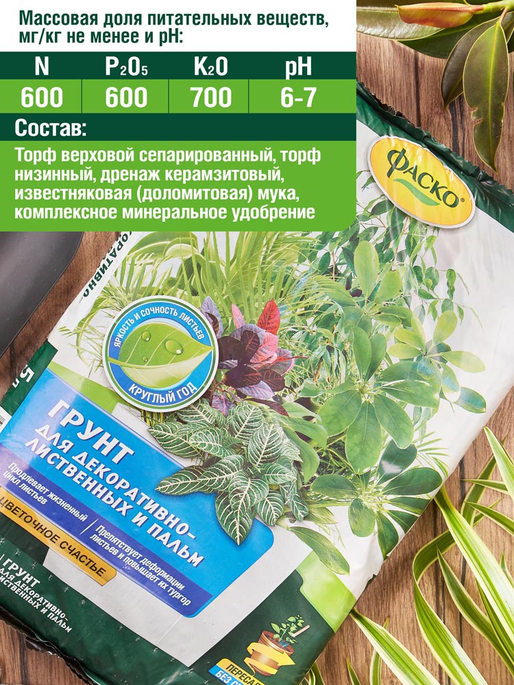 Питательные элементы: Азот - 600 мг/кг; Фосфор - 1000 мг/кг; Калий - 700 мг/кг; марганец - 70 мг/кг; железо - 30 мг/кг; медь - 6 мг/кг; цинк - 5 мг/кг; бор - 1 мг/кг; молибден - 1,5 мг/кг; гуматы – 1 мг/кг; pH 6-7.