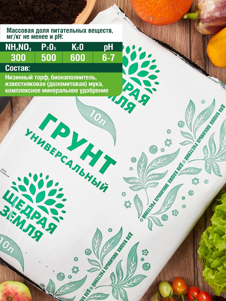 Питательные элементы: Азот – 150 мг/кг; Фосфор – 150 мг/кг; Калий - 150 мг/кг; рН 6-7