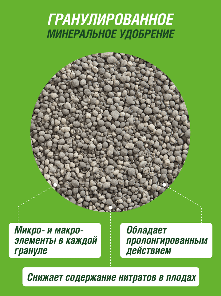 Всё в одной грануле - каждая гранула удобрения содержит макро- и микроэлементы