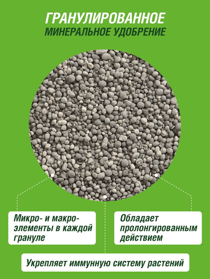 Всё в одной грануле - каждая гранула удобрения содержит макро- и микроэлементы
