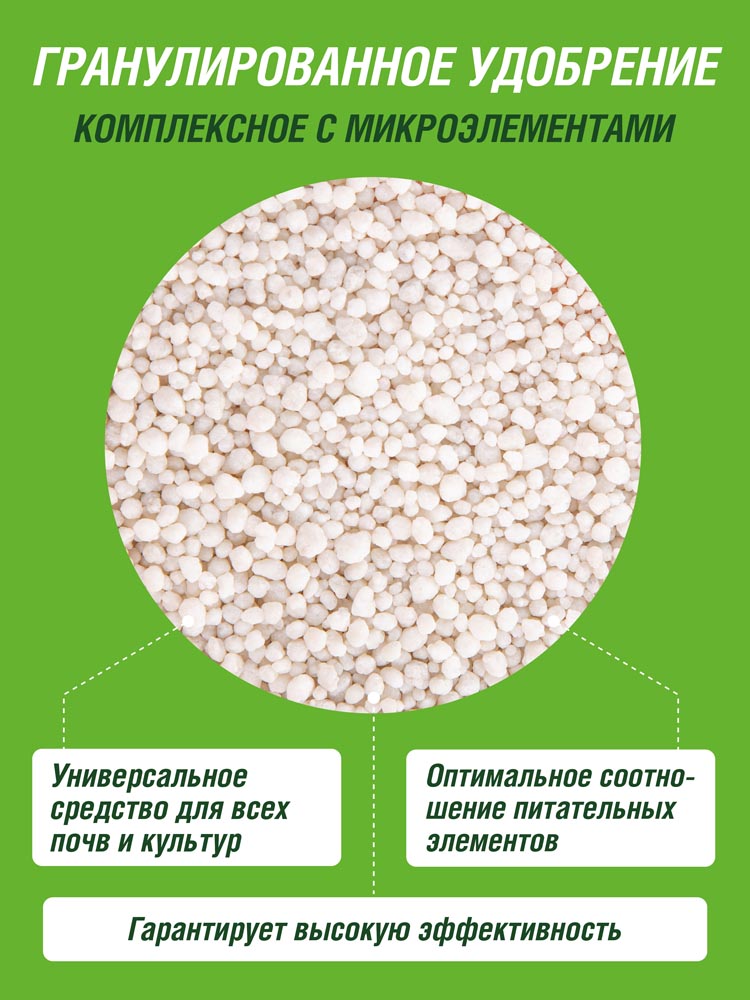 Питательные элементы: Азот общий – 15; Фосфор – 15; Калий – 15