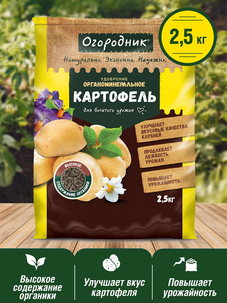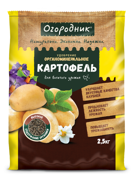 Комплексное бесхлорное гранулированное удобрение пролонгированного действия для картофеля и других корнеплодных культур на основе полезной органики.