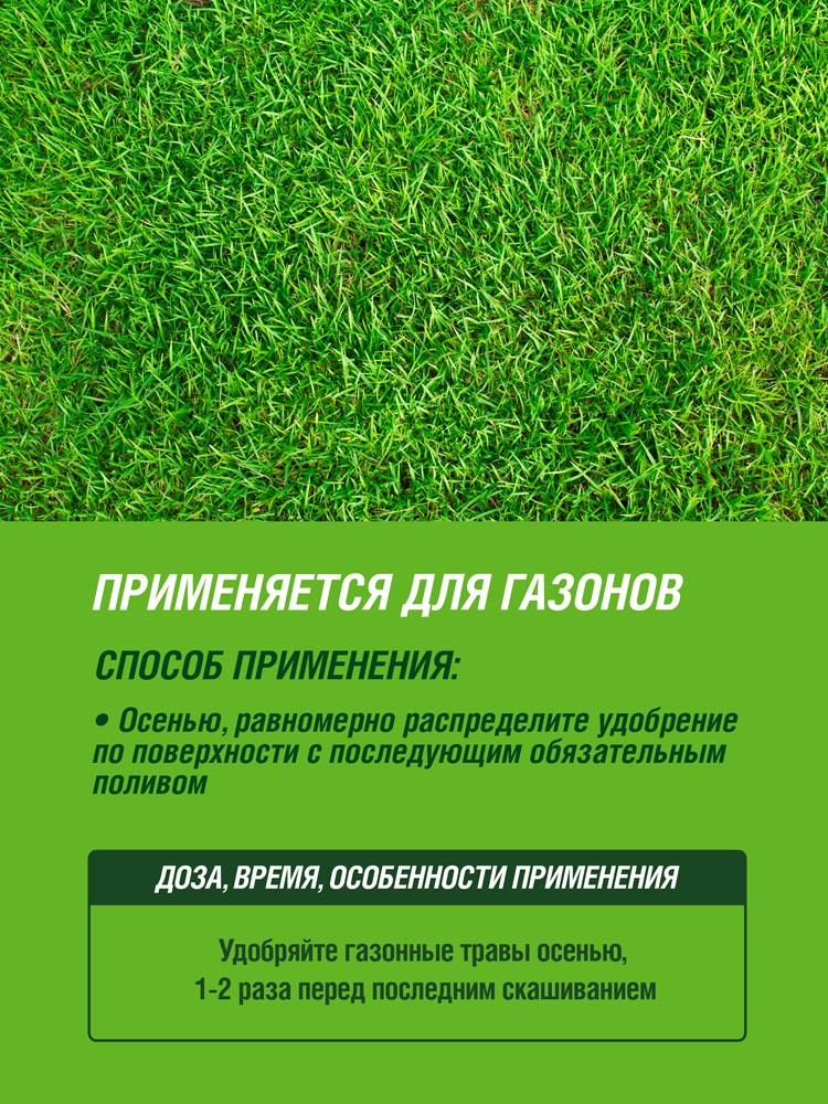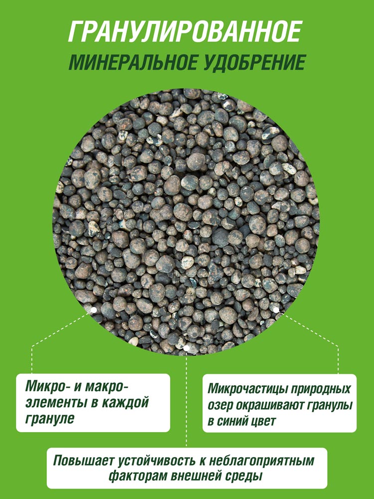 | Питательные элементы: | Массовая доля питательных веществ, % не менее: Азот - 3; Фосфор - 6; Калий - 12; Железо - 0,1; Марганец - 0,05; Бор - 0,01; Медь - 0,01; Цинк - 0,01 |