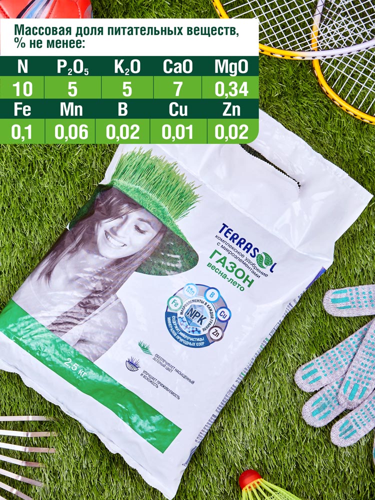 Питательные элементы: Азот – 10; Фосфор – 5; Калий – 5; магний - 2,0; железо - 0,15; марганец - 0,08; бор - 0,02; медь - 0,01; цинк - 0,02.