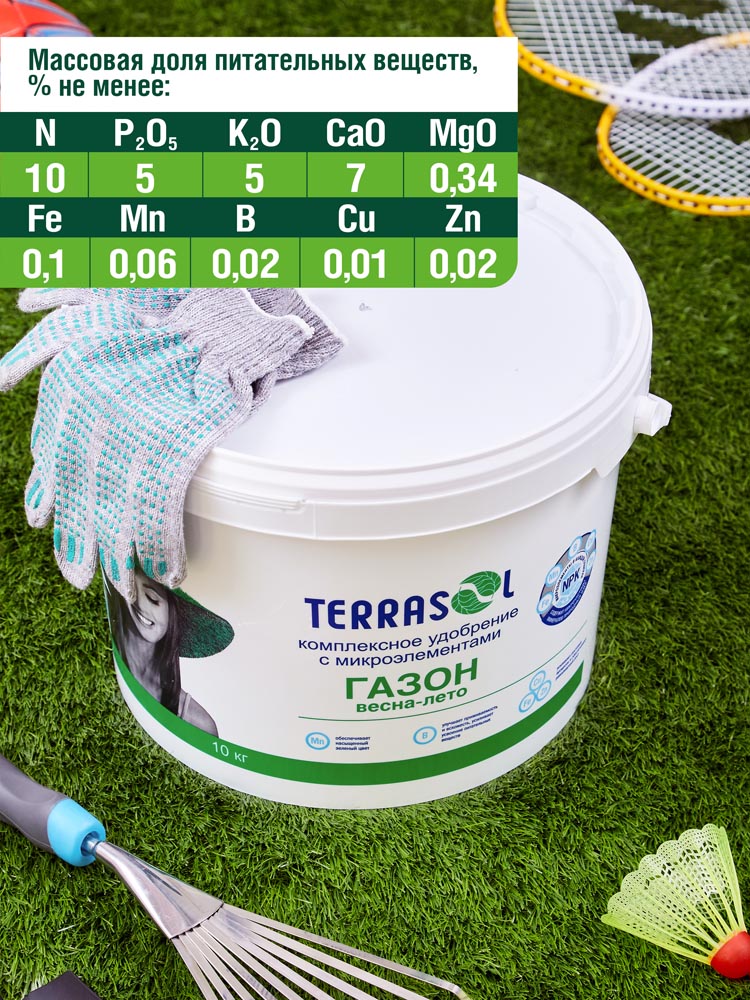 Питательные элементы: Азот – 10; Фосфор – 5; Калий – 5; магний - 2,0; железо - 0,15; марганец - 0,08; бор - 0,02; медь - 0,01; цинк - 0,02.