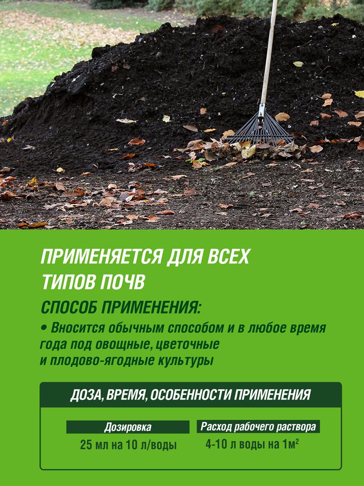 Азот (NH4+NO3) > 0,9%, фосфор (P2O5) > 0,6%, калий (K2O) > 1,5%, органическое вещество – не менее 3 %